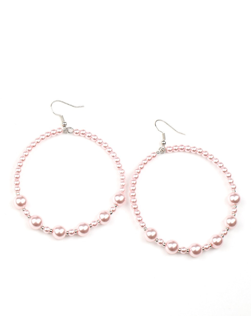 Varying in shape and size, a bubbly array of polished pearly pink and dainty silver accents glide along a wire hoop for a classy finish. Earring attaches to a standard fishhook fitting.