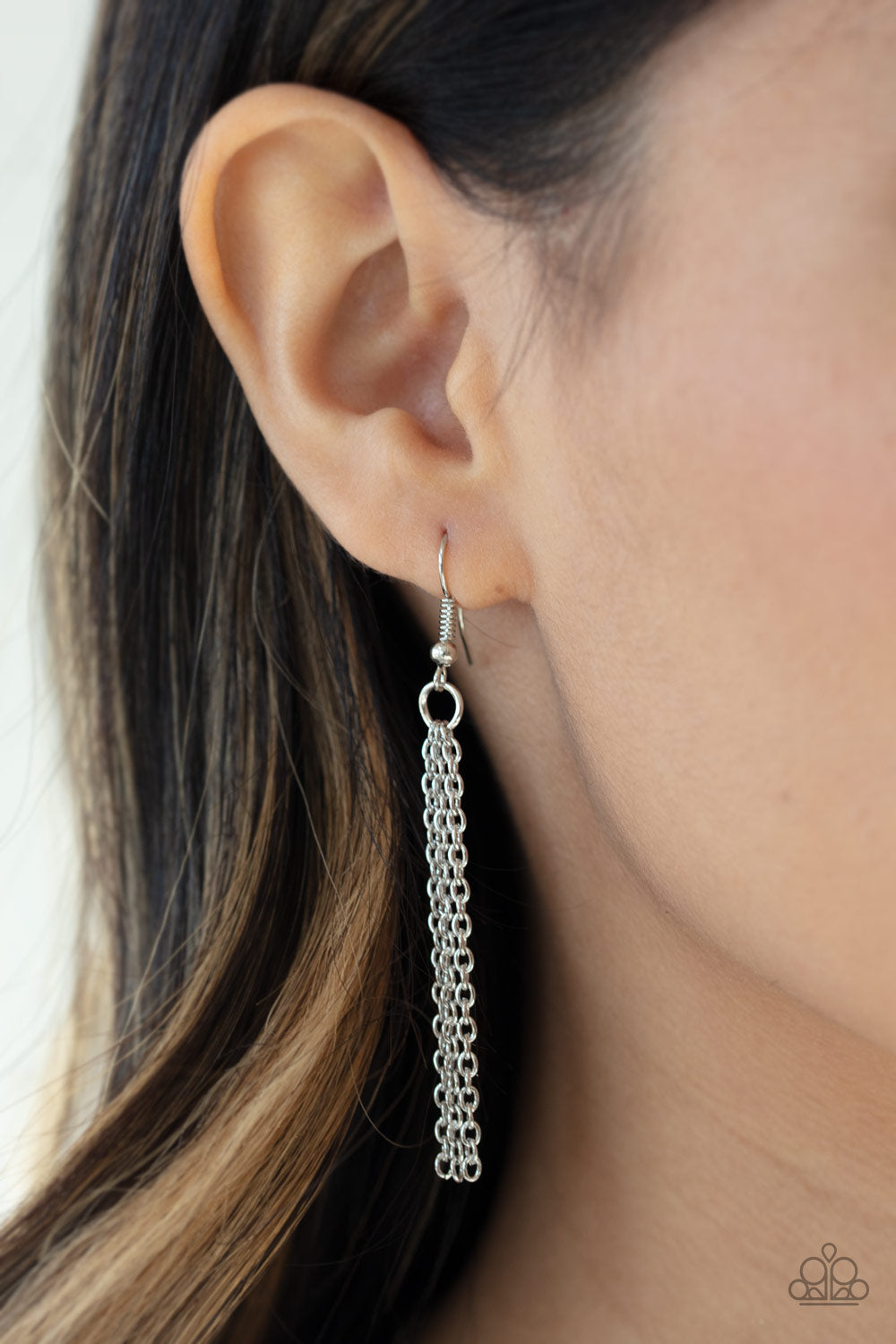 An imperfect red gem is pressed into the center of an edgy silver frame at the bottom of a lengthened silver chain for a glitzy look. Features an adjustable clasp closure.
